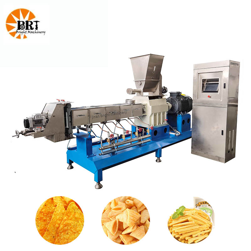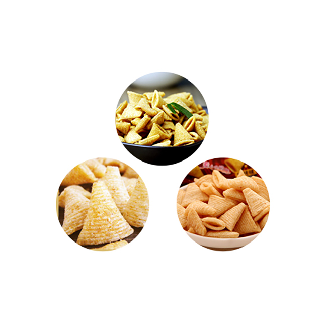 This production line could produce bugle shape fried snacks. The main raw materials for the production of bugles snack are corn starch, rice starch and potato starch.
