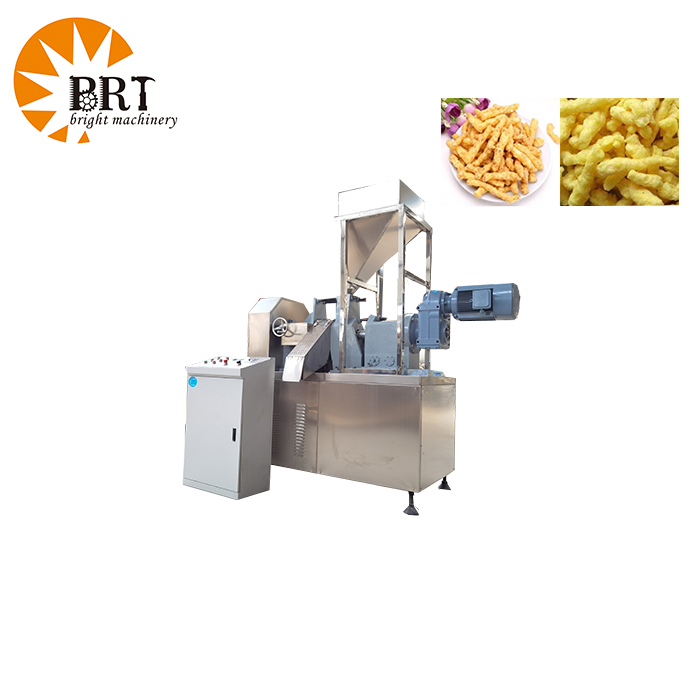 Kurkure Making Machine Manufactures is made of corn residue as uncooked material, extruded with the useful resource of way of the host laptop computer into irregular puffed food, after seasoning can be made into top notch trend products, cherished with the aid of capability of consumers. The Kurkure Making Machine Manufactures feeds the hopper with the aid of vibration and can alter the glide value of uncooked materials. Kurkure Making Machine Manufactures feed screw tempo is managed by means of way of way of frequency conversion and can be adjusted arbitrarily. Mechanical tools linkage, to reap data manipulate of the extrusion head clearance,hand wheel manipulate of the laptop computer base linkage, can make the feeding screw greater barring troubles into the Kurkure Making Machine Manufactures extrusion barrel.Frying type: ①Flour mixing machine→②Screw conveyor→③Rotary head extruder→④Elevator→⑤Separation cylinder→⑥Vibrating feeder→⑦Continuous fryer→⑧Vibration deoiling machine→⑨Seasoning line