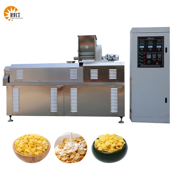 Breakfast cereal corn flakes are a brittle food, with good rehydration, outside flushing not rotten, smooth taste, grain flavor. Corn flakes are mainly made of corn flour as the main raw material, with sugar, various vitamins and minerals added as warm raw materials. After adding a certain amount of water, they can be fully kneaded, matured, formed, pressed and roasted to taste by professional corn flakes machine. professional corn flakes machine can also produce breakfast cereal products in other shapes, such as circles, balls and moons.