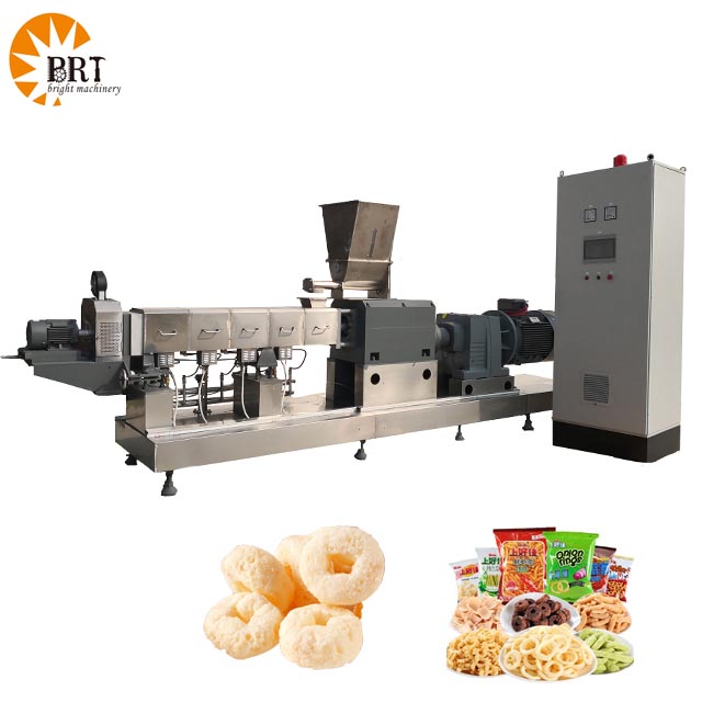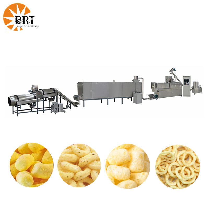 Corn Puff Snack Food Extruder undertake corn, rice, wheat, oat, barley and so on as factors to make puffed snack. Through frication of screw and barrel, the grains are cooked in the extruder. Forming is at the die face cutter. The product form is determined thru a combination of the die aperture, collectively with ball, tube, stick, ring, fruit loop, star, wheel and flower etc.
