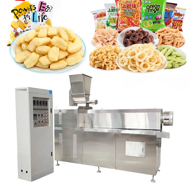 3.Corn Puff Production Line predominant motor, rotary reducing motor and feeding motor are all managed by means of frequency conversion, which can understand smooth start and effectually defend the motor, and can alter the tempo in accordance to the product recognition to produce larger awesome products; Corn Puff Extrusion Machine Production Line geared up with PLC contact show display screen manipulate system, equipment temperature and The pace adjustment is increased digital and the manipulate is increased precise.