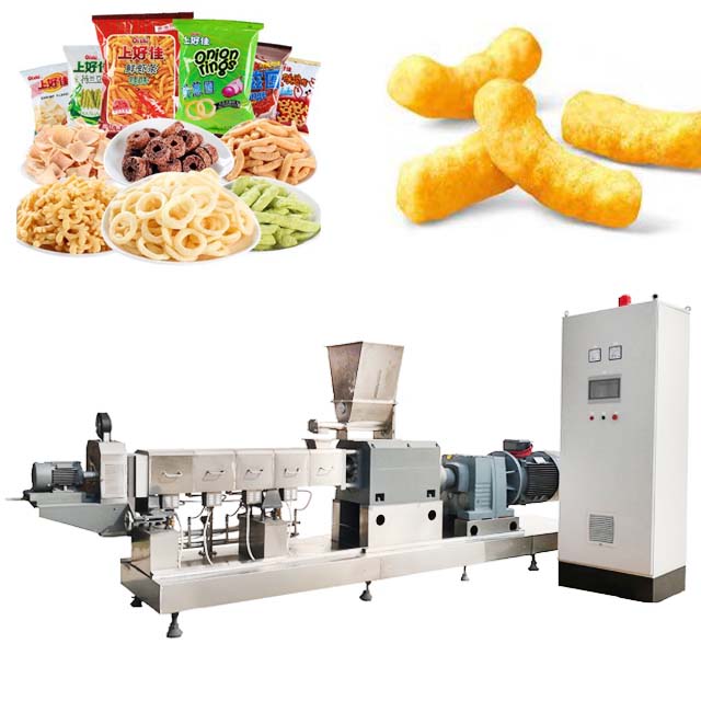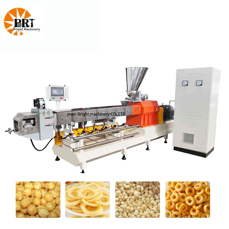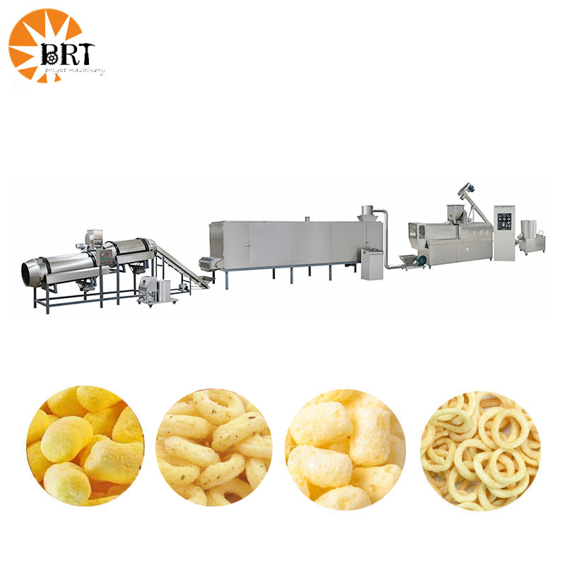 Corn Puff Making Machine Automatic puffed core filling meals extruder computer undertake corn, rice, wheat, oat, barley and so on as elements to make puffed snack. Through frication of screw and barrel, the grains are cooked in the extruder. Forming is at the die face cutter. The product form is decided through a aggregate of the die aperture, together with ball, tube, stick, ring, fruit loop, star, wheel and flower etc.