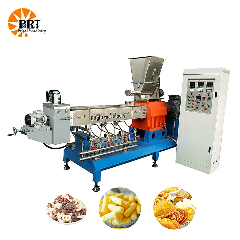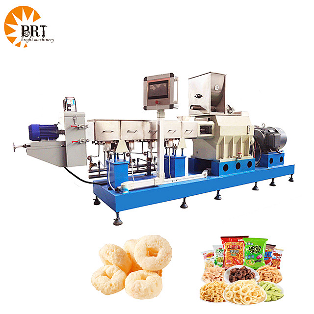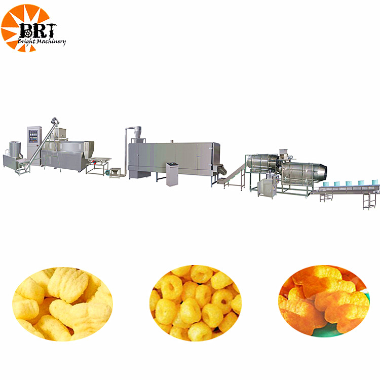 Corn Puff Snack Extruder makes powdered uncooked substances which consist of corn flour into puff snack through the machine of mixing,puffing,drying,flavoring and cooling. the same manufacturing line can produce puff snacks of a variety of patterns and sizes. at the equal time,at the same time, the same puff snack can be matched with incredible machine production strains in step with precise ability