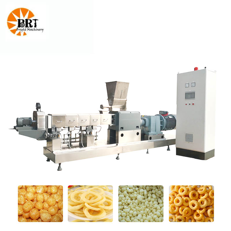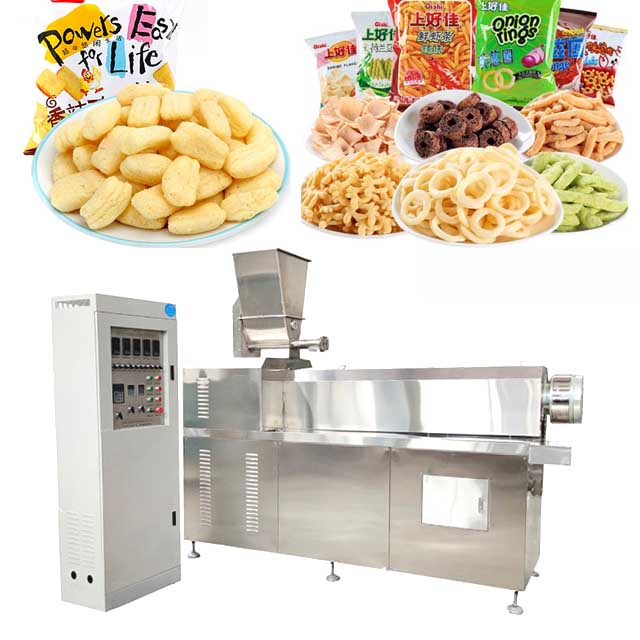 The Corn Puff Extrusion Machine Production Line makes powdered uncooked substances which consist of corn flour into puff snack through the machine of mixing,puffing,drying,flavoring and cooling. the equal manufacturing line can produce puff snacks of a number patterns and sizes. at the equal time, the equal puff snack can be matched with fantastic desktop manufacturing traces in step with particular ability.
