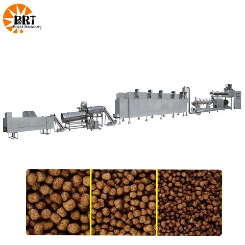 Screw conveyor→Mixer→Screw conveyor→Extruder→Air conveyor→Dryer→Sifter→Hoist→Flavoring roller→Cooling conveyor