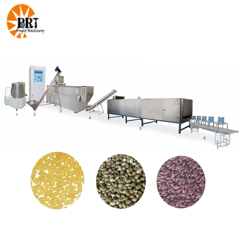 Artificial Rice Maker Machine use of broken rice as raw material, and grinds broken rice with the aid of the pulverization approach to flip out to be pleasant rice noodles. The extruder of Artificial Rice Maker Machine adopts twin-screw configuration and is made of alloy fabric with the resource of unique process, so it has a prolonged provider life.Artificial Rice Maker Machine has a circulating water cooling device to make positive that the product is out of the mold. Artificial Rice Maker Machine adopts smart rotary reducing control, which is simple to operate, reachable and fast.