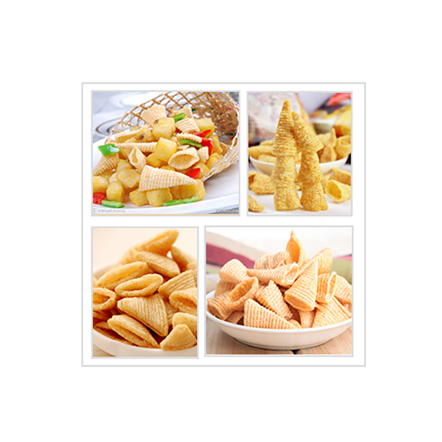 This production line should produce many shapes fried snacks. the principle raw materials for the production of bugles snack are corn starch, rice starch and potato starch.Snack has turn out to be a popular food for its delicious and crisp taste, clean to hold and devour, wide software of raw substances, and changeable taste.
