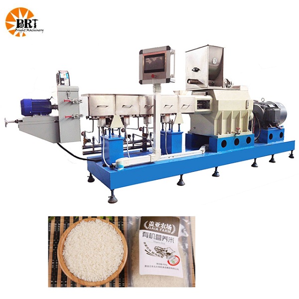Twin screw instant rice extruder machine is developed and produced according to the current nutritional needs of food and combined with foreign technology. Twin screw instant rice extruder machine can use rice, millet, black rice, buckwheat and other whole grains as raw materials, and add various vitamins. Processed with protein and minerals, extruded, cooked, and shaped in an extruder to regenerate new fortified rice, golden rice, buckwheat rice, purple potato rice, etc., which is the same as natural rice and easier and more convenient to use.