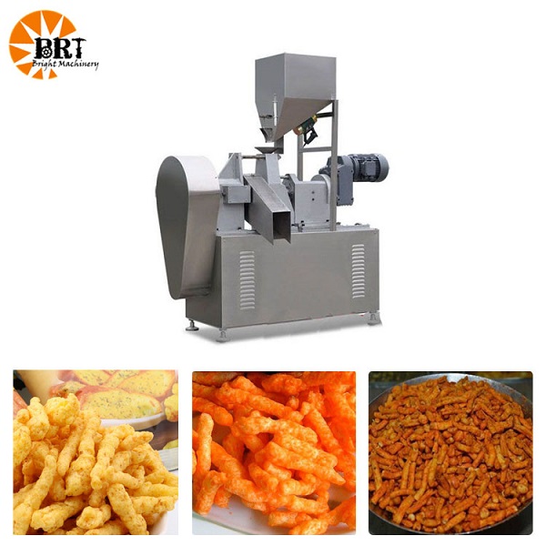 Cheetos is a special type of squeezed food that is very crunchy in the mouth. The corn grits are mixed with a certain proportion of water and then enter the rotary head extruder. Under the squeezing and kneading action of the two turntables of the extruder, the corn grits form irregular twisted shapes, and then the cutting knife cuts them into the desired length.Cheetos can be seasoned after deep-frying or roasting. It is very popular among consumers because of its delicious flavor.Various outputs to meet different needs. The integrated control cabinet makes the operation more simple and easy to learn. Self cleaning function improves the use experience and saves time.