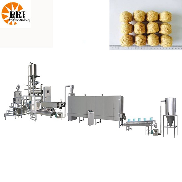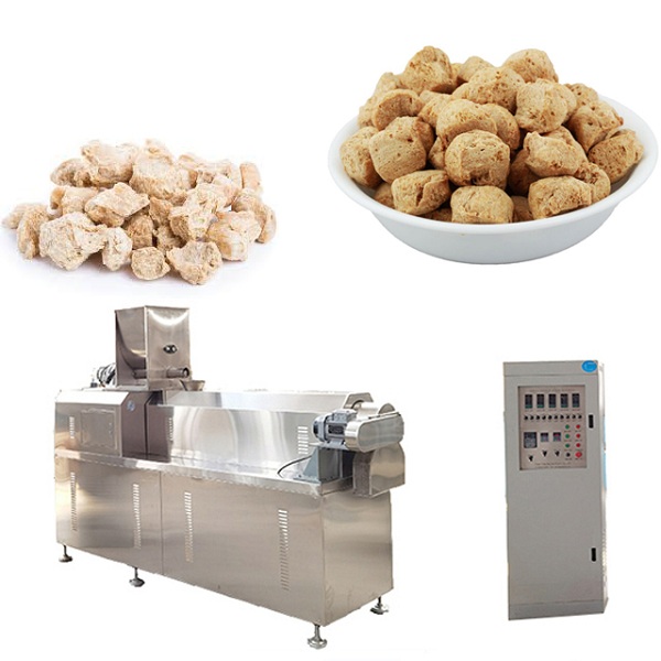 TSP soya chunks extrusion making machines use of low-temperature soybean meal, soybean protein isolate, gluten powder, etc. as the most important uncooked materials. Processes such as melting, cooking, excessive temperature sterilization, extrusion molding, etc., shape a layered hard fiber structure, thereby producing a layered muscle fiber structure, excessive strength, excessive sturdiness comparable to meat texture and taste. Depending on the die and auxiliary equipment, shapes such as cylinders, blocks, sheets, strips, granules, puddings, crumbs, etc. can be produced respectively. It is sturdy and resistant to high temperature stewing, so it can be extensively used in meat products, speedy food, quick-frozen food, stuffing, immediately noodle seasoning, etc. It can additionally be made into vegetarian meat snack meals and vegetarian dishes of extraordinary flavors. TSP soya chunks extrusion making machines is a whole set of completely automated manufacturing lines, consisting of uncooked cloth mixing, extrusion molding, drying, cooling and different equipment, and there are manufacturing strains with one-of-a-kind outputs and configurations.